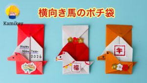 カミキィ折り紙一枚で作れるうまのぽち袋です。