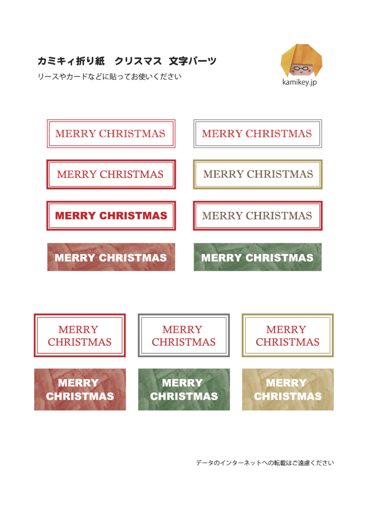 クリスマスのリースやカードなどに貼って使える「メリークリスマス」の文字パーツデータです。